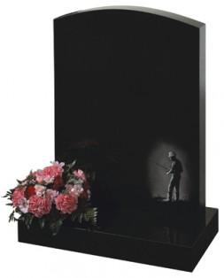 A camber top, polished Black granite memorial. Any favourite pastime can be illustrated by our crafstmen.
